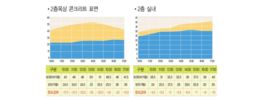 • 내부열 배출 속도가 증가하고 실내공기 치환율이 높아짐