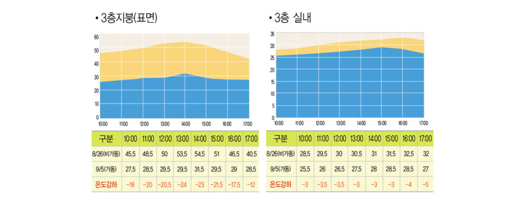 • 지붕을 중심으로 건물외피를 통한 유입열 차단