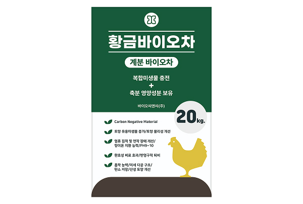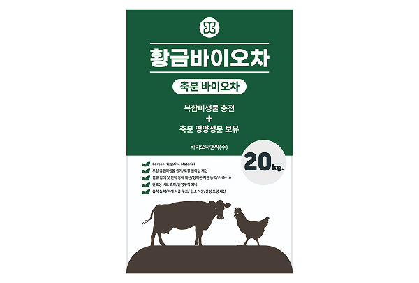 바이오씨앤씨의 황금바이오차는 축분을 원료로 사용해 미생물이 충전된 기능성 생물비료 형태로 생산됩니다. 축분을 퇴비화하는 과정에서 발생하는 메탄과 아산화질소(N₂O) 배출을 방지하며, 목질계 바이오차 대비 화학비료 대체 효과가 우수한 제품입니다.