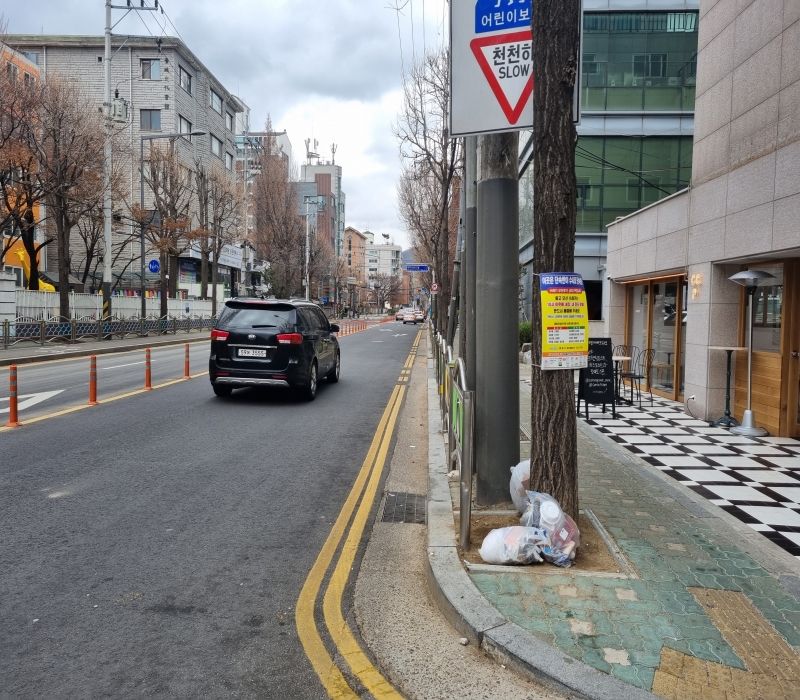 시공현장 서울시 마포구 시공년도 2023년 시공목적 스쿨존 안내 위치 서울시 마포구 성미산로 시공효과 경계석 보호 및 파손 경계석 보완, 주·야간 시인성 확보, 불법 주정차 문제 해소, 운전자·보행자 안전성 확보